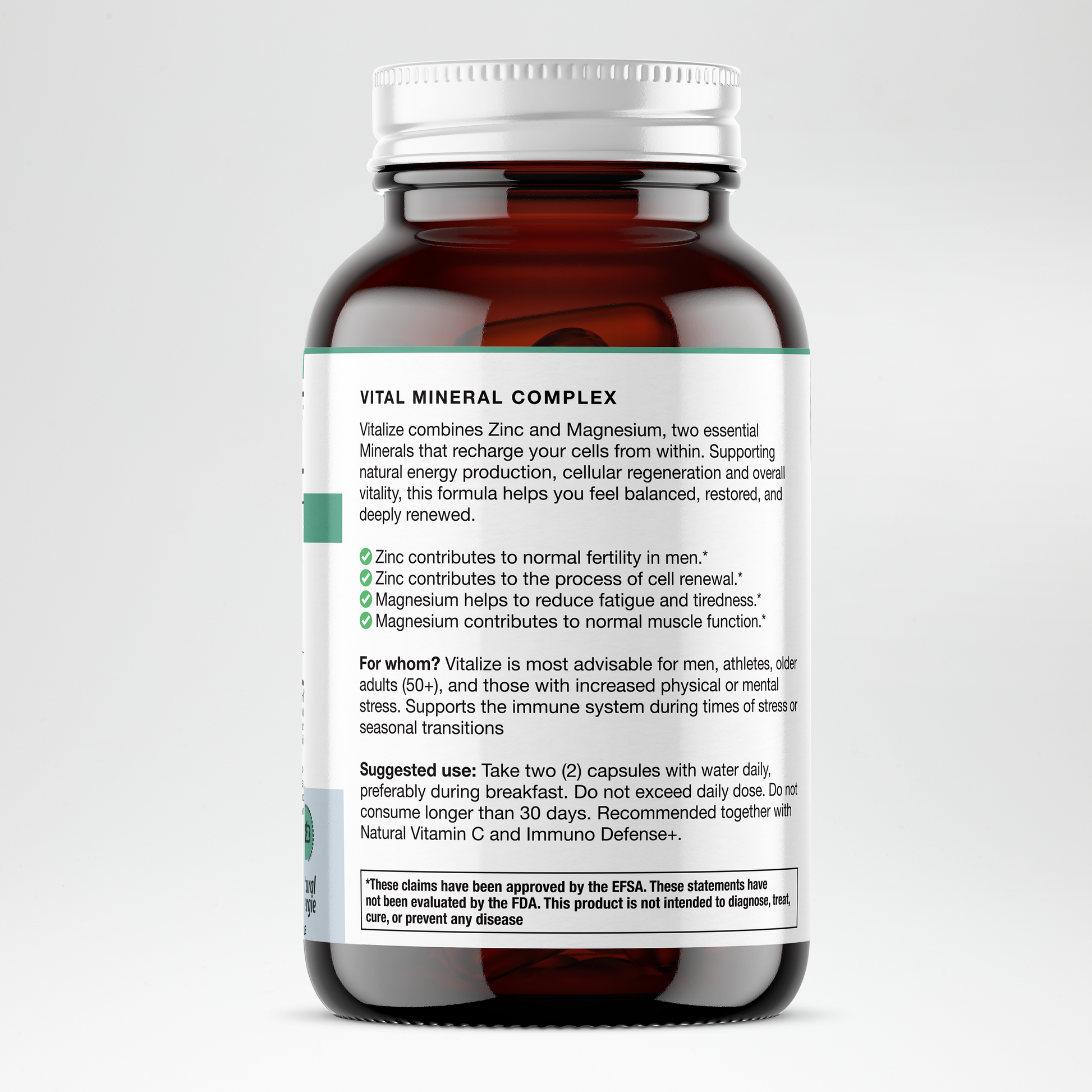 Vitalize is a premium mineral complex with Zinc, Magnesium and Taurine, formulated to support vitality, fertility, and energy metabolism in men.